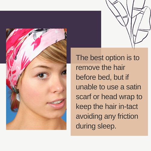 It is always best to remove the hair before bed. But if you have a permanent attachment, the best remedy is to wrap the hair up with a satin scarf. You want to avoid has much friction as possible to keep the hair from getting matted.